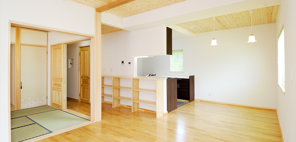 2世帯住宅のため、2階でも家族が集うセカンドリビングをご提案。大人数が生活することを想定してパントリー・キッチンまわりの収納力を強化しております。大屋根の特徴をいかした2階にも収納部屋を配置しております。